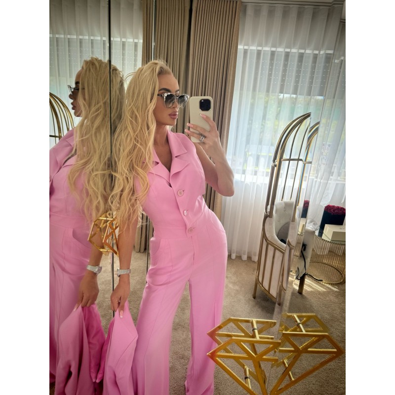 A blush pink sleeveless wide-leg jumpsuit.