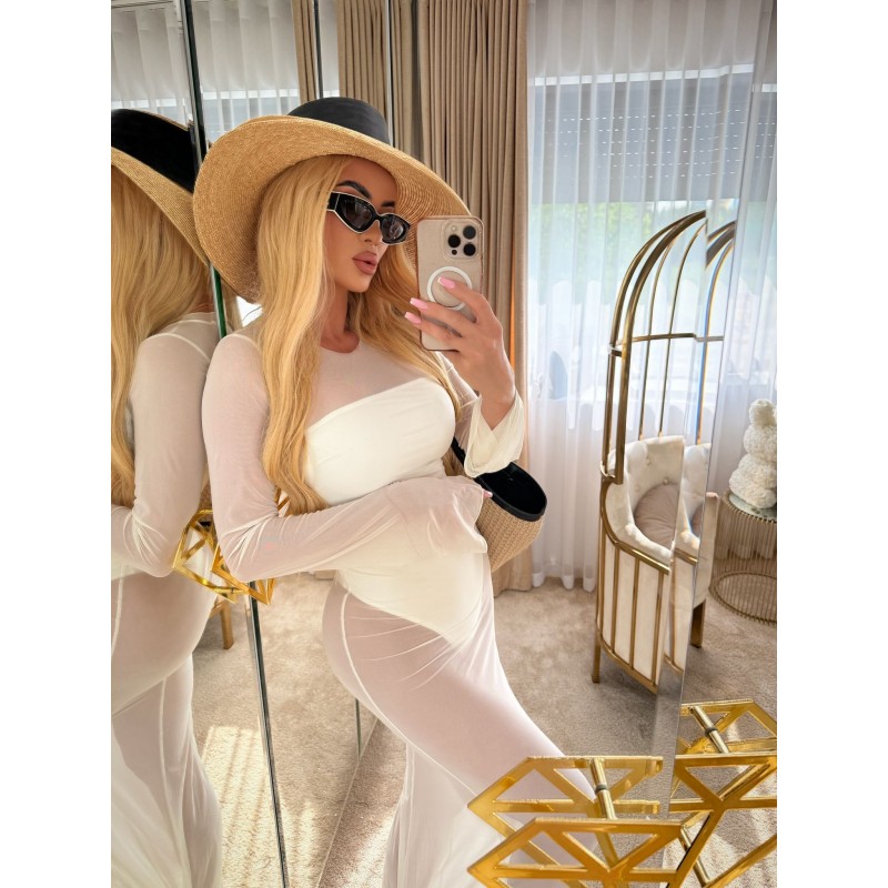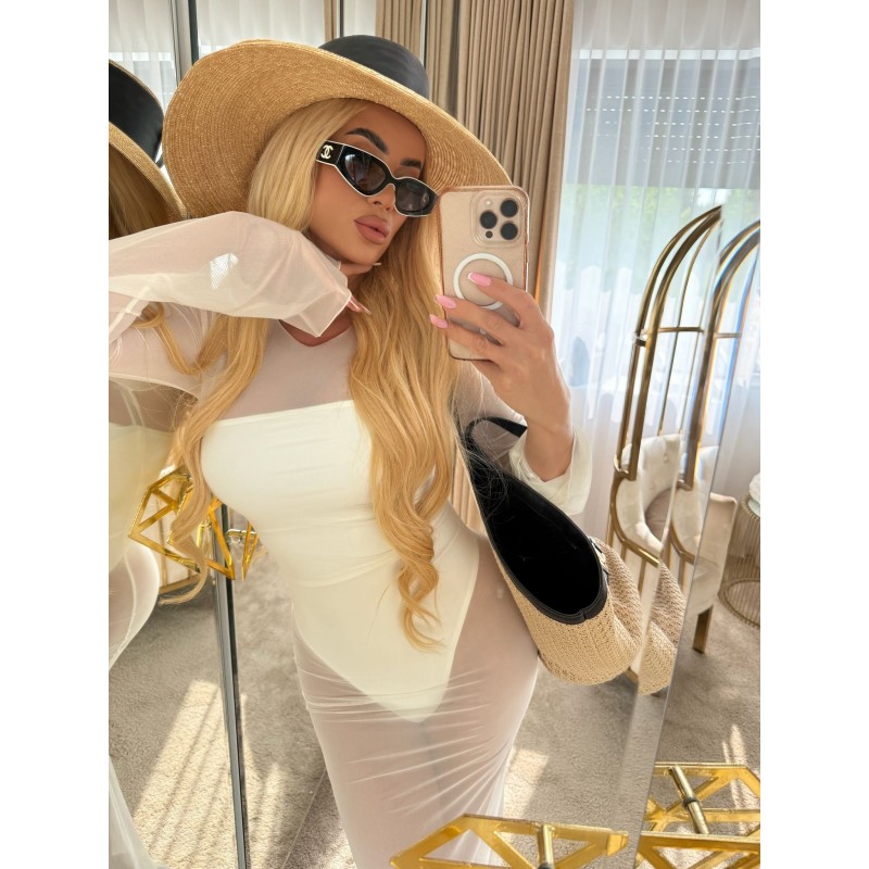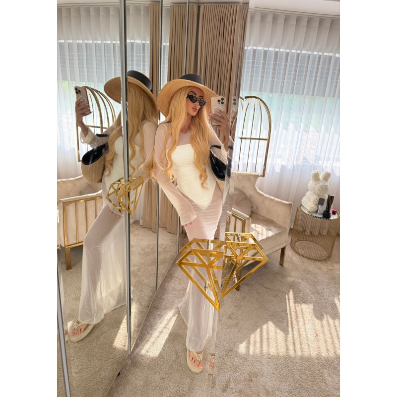 Lightweight semi-sheer maxi dress in ecru.
