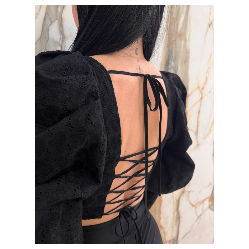 SPECTRA NAVY – EXCLUSIVE TOP WITH FEATHERS IN NAVY BLUE COLOR