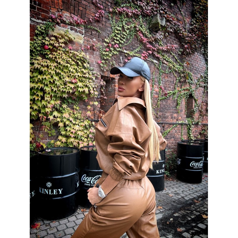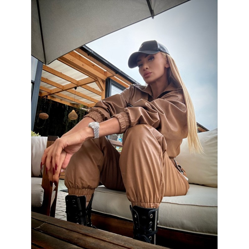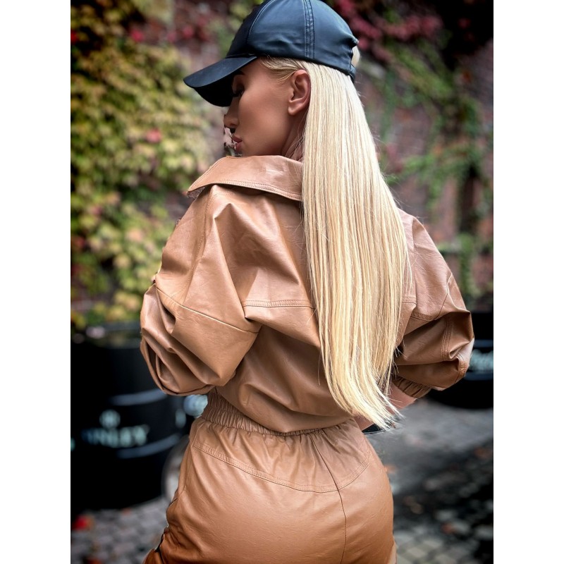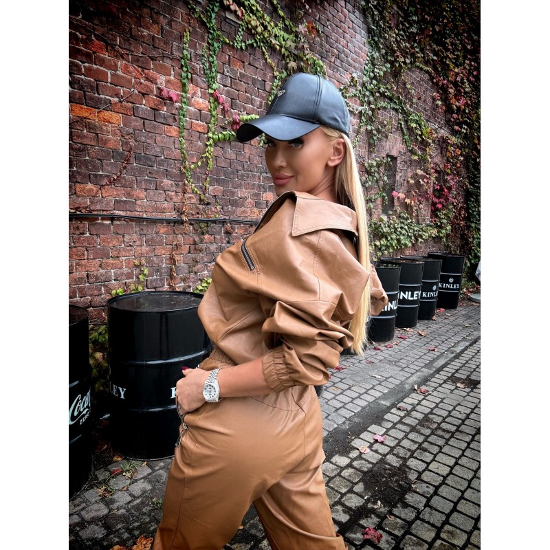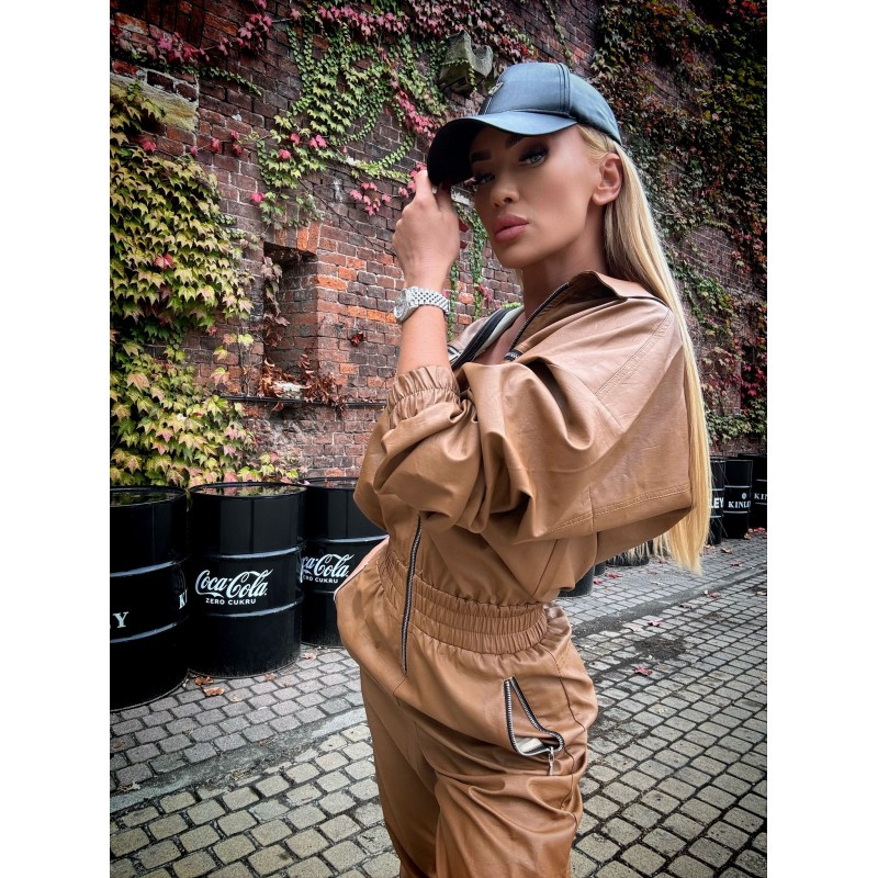 RIHANNA CARAMEL LIMITED – JUMPSUIT MADE OF ECO-LEATHER IN CARAMEL COLOR WITH ZIPPERS