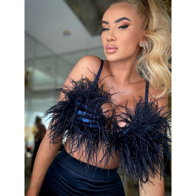 SPECTRA NAVY – EXCLUSIVE TOP WITH FEATHERS IN NAVY BLUE COLOR